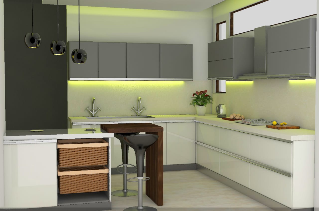 We have various types of designs according to your needs. Designs that are in our kitty are: peninsular modular kitchen, parallel shaped kitchen, island modular shape, U-shape etc. There are few more on discussion.